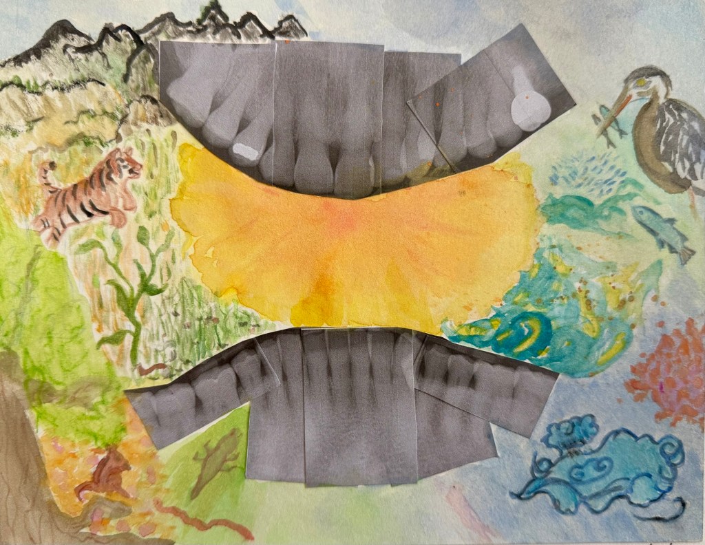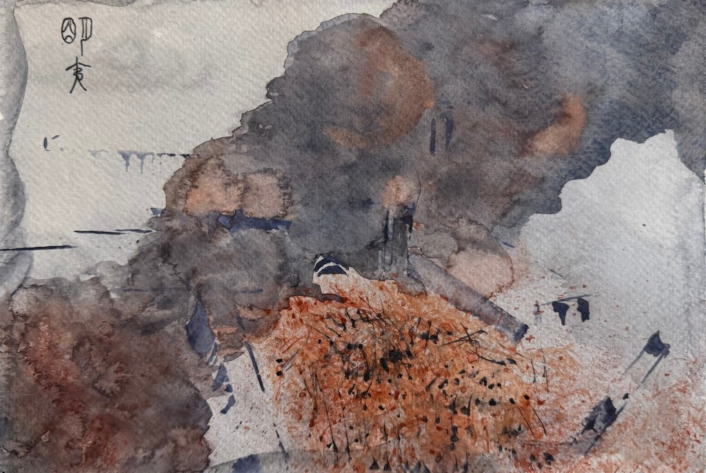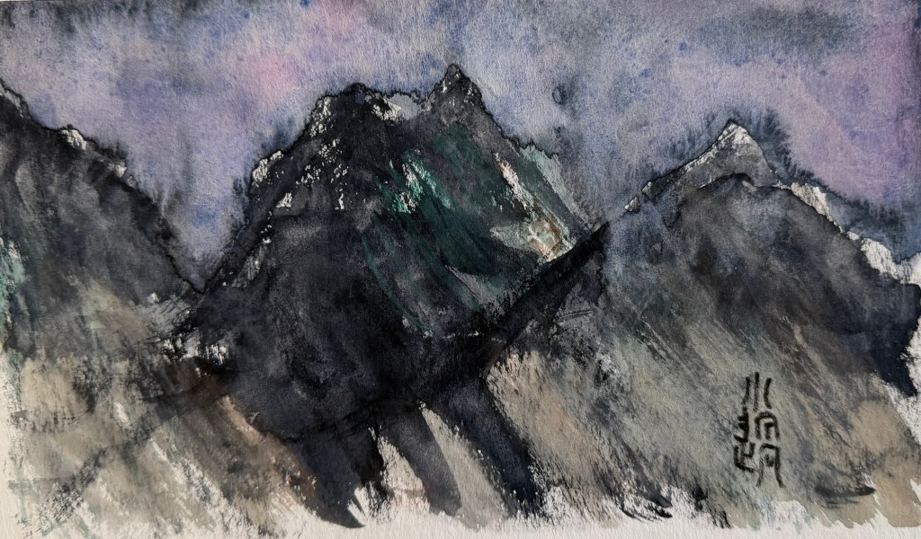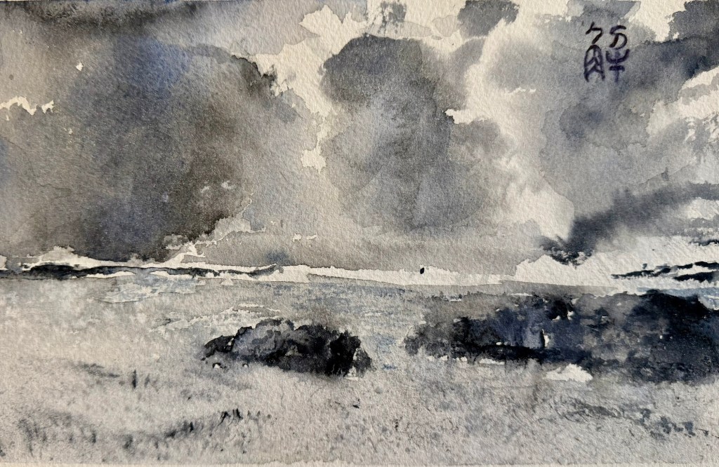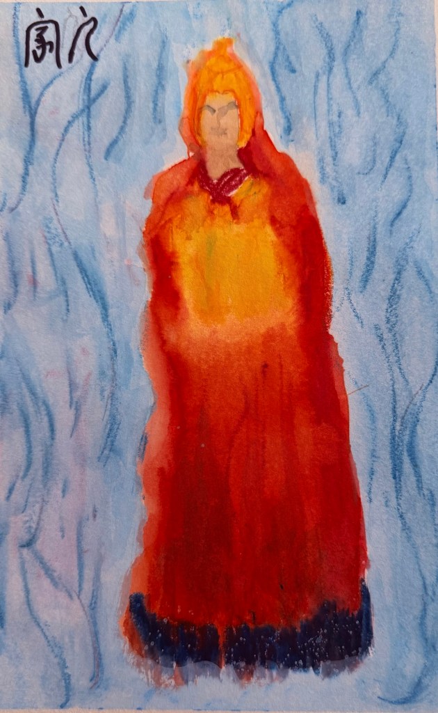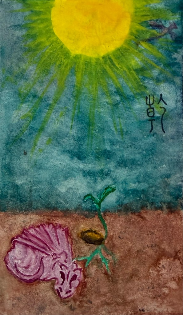 Although I do not use it for “divination” in the old sense, I like to toss a coin to obtain a hexagram when reflecting on current events or my life. Especially if I read the Decisions and commentaries in multiple translations, it disrupts brooding and sometimes leads to new insights. The watercolor images and attempt at a jin wen calligraphy express my response.